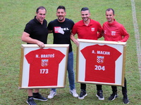 Prije samog početka utakmice prigodne crvene majice / dresove za kraj karijere su dobili Niko Bratoš i Antun Macan, a za svoje jubilarne nastupe Marino Zalokar i Pero Macan (150), te Gojko Korać (100).