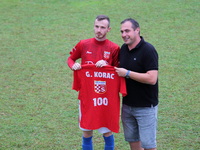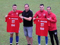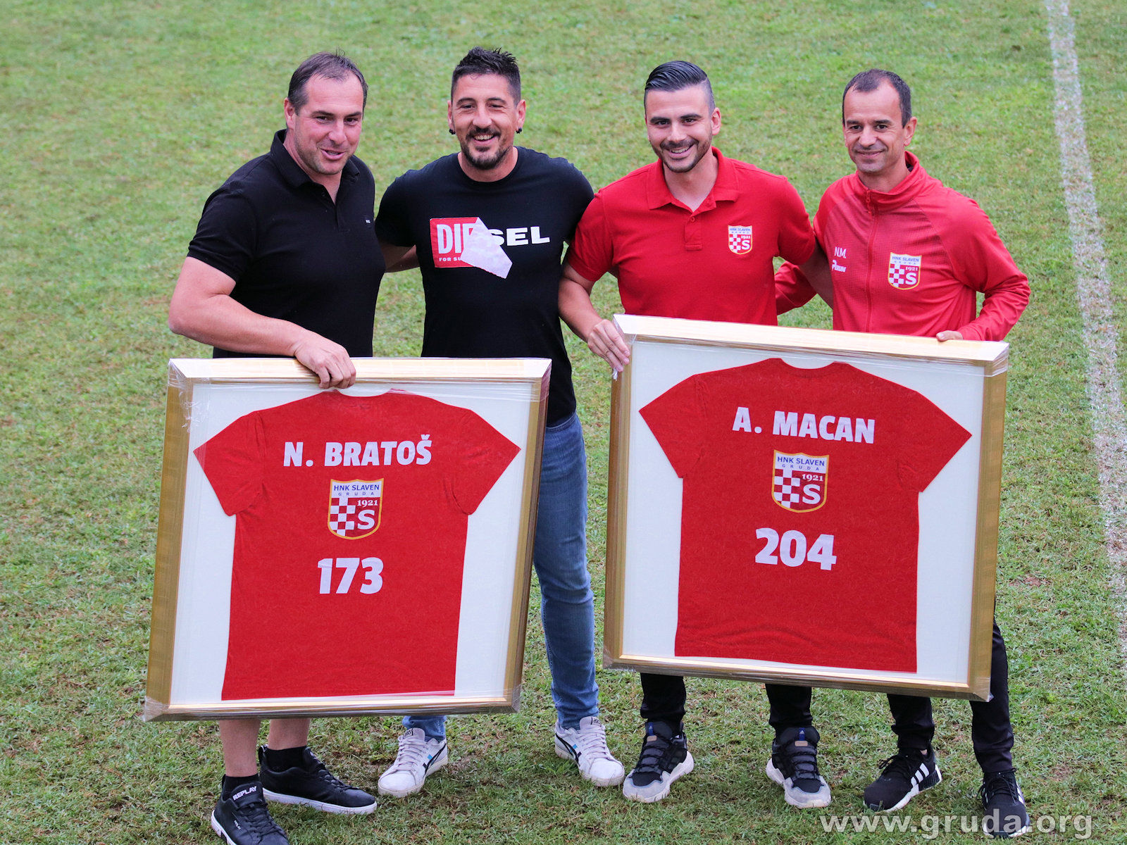 Prije samog početka utakmice prigodne crvene majice / dresove za kraj karijere su dobili Niko Bratoš i Antun Macan, a za svoje jubilarne nastupe Marino Zalokar i Pero Macan (150), te Gojko Korać (100).